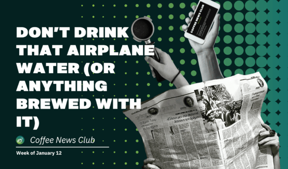 Turns out flight attendants were right about coffee brewed on planes. Plus, bankruptcy news and California-grown gesha is up for auction.