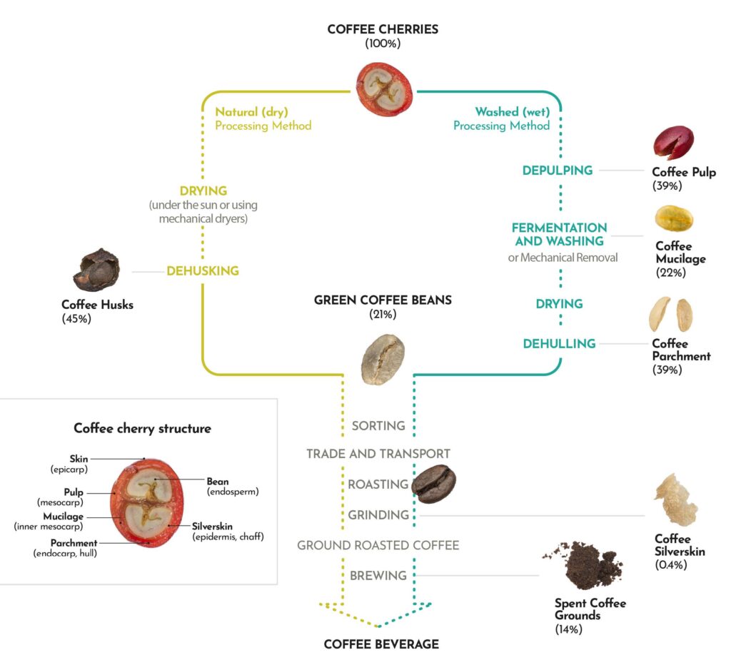 To understand how coffee waste can contribute to a circular economy, we have to understand just how much of the coffee cherry is potentially reusable—a major goal of the ICO report.