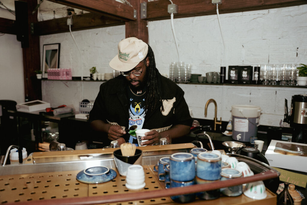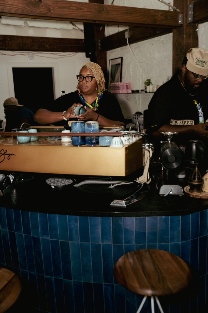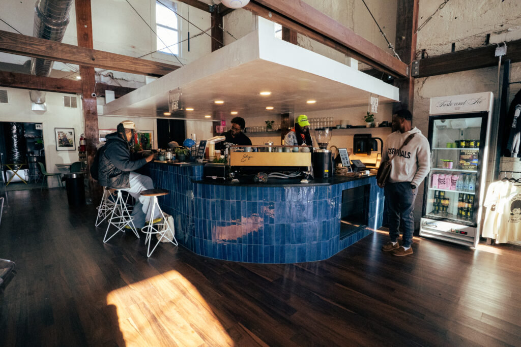 The new space took this long to come to fruition in part because Jones and Henderson are always working on several projects at once. Since beginning the planning process for the headquarters, Cxffeeblack has also launched the Barista Exchange Program, filmed a documentary of the founders’ first trip to Africa, started a merch line, sold a T-shirt using the world’s first Black-owned cotton supply chain, and more.